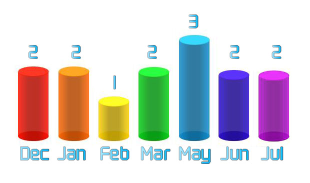 从数据看,似乎各月份产生的擂主人数相差不大,但细究后发现:奇数月晋级的人数远远超过了偶数月。莫非下半年的收视率,奇数月的热度将大大提升?整个上半年中,只有4月份没有选手能够晋级年终总决赛,也许对于擂台赛来说,这还真是个“诸事不宜”的时间……