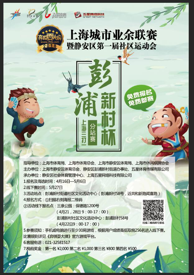 如果你喜欢三打一,渴望与牌友一较高下,那么你一定不能错过本次“彭浦新村杯”分站赛!