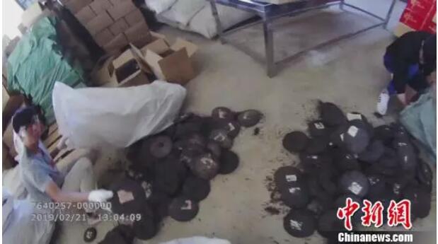 图为堆在地上的假冒普洱茶饼