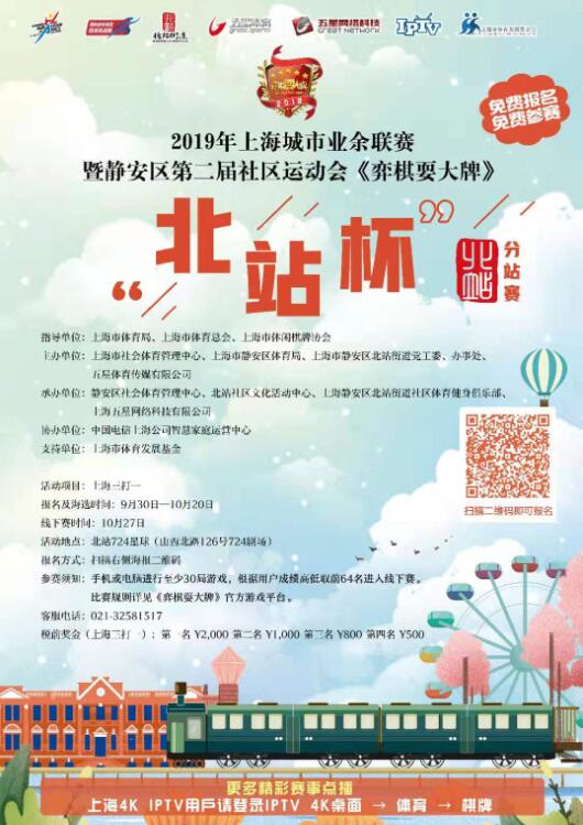 2019年上海城市业余联赛暨静安区第二届社区运动会《弈棋耍大牌》棋牌巡回赛第十一站“北站杯”正式开始报名。