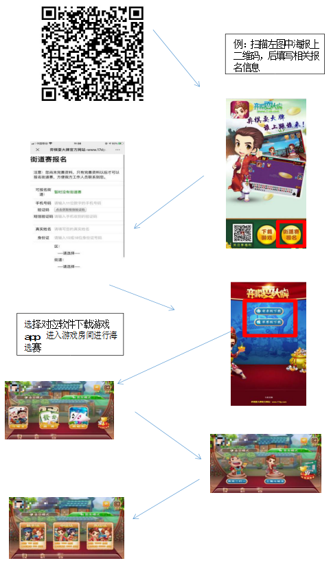 (1)通过各种宣传渠道扫码进行报名并下载《弈棋耍大牌》app;