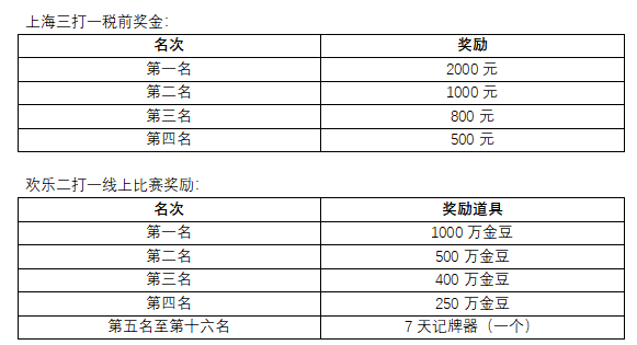 欢乐二打一线上比赛时间:13:00至14:00(仅限手机app进行比赛)