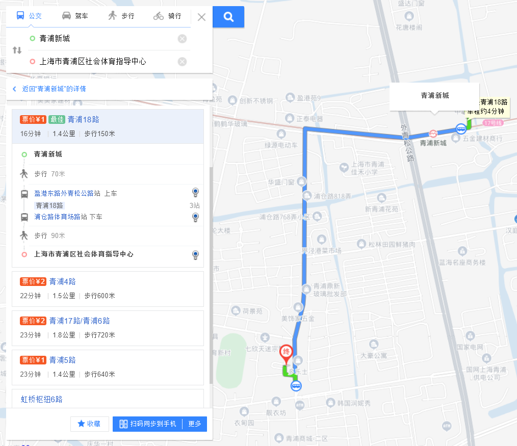公交路线:地铁17号线青浦新城站下车,换乘青浦4路、青浦18路,青浦17路/青浦6路至浦仓路体育场路下车,步行90米即可到达。