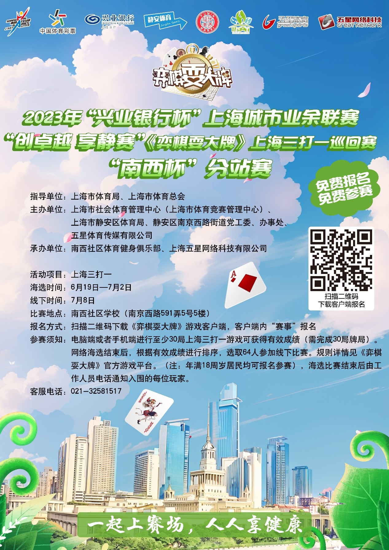 2023年“兴业银行杯”上海城市业余联赛“创卓越 享静赛”《弈棋耍大牌》上海三打一巡回赛“南西杯”分站赛线上海选正式启动!