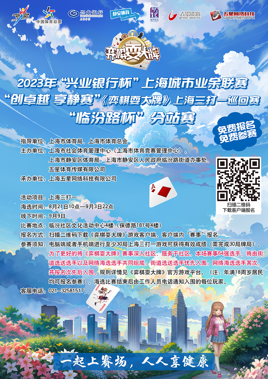 2023年“兴业银行杯”上海城市业余联赛“创卓越 享静赛”《弈棋耍大牌》上海三打一巡回赛“临汾路杯”分站赛线上海选正式启动!