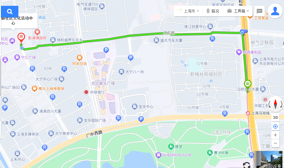 公交路线:轨道交通1号线上海马戏城站,公交206路,79路,951路灵石路万荣路站