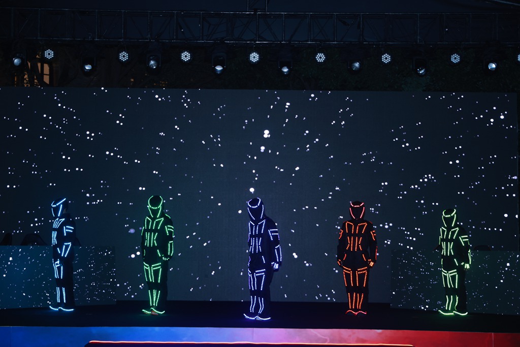 晚 19时整,开幕式在一场极具视觉冲击的灯光秀中拉开帷幕,同时也宣告着这场备受瞩目的电竞盛典正式启航 。大屏幕播放了 2025 年度大赛主题宣传片, 展现了黄浦区蓬勃发展的电竞产业生态 。电光舞表演——《超时空战士》则将现场气氛推至高潮,引得观众凝神观看,对即将开始的比赛更加期待。