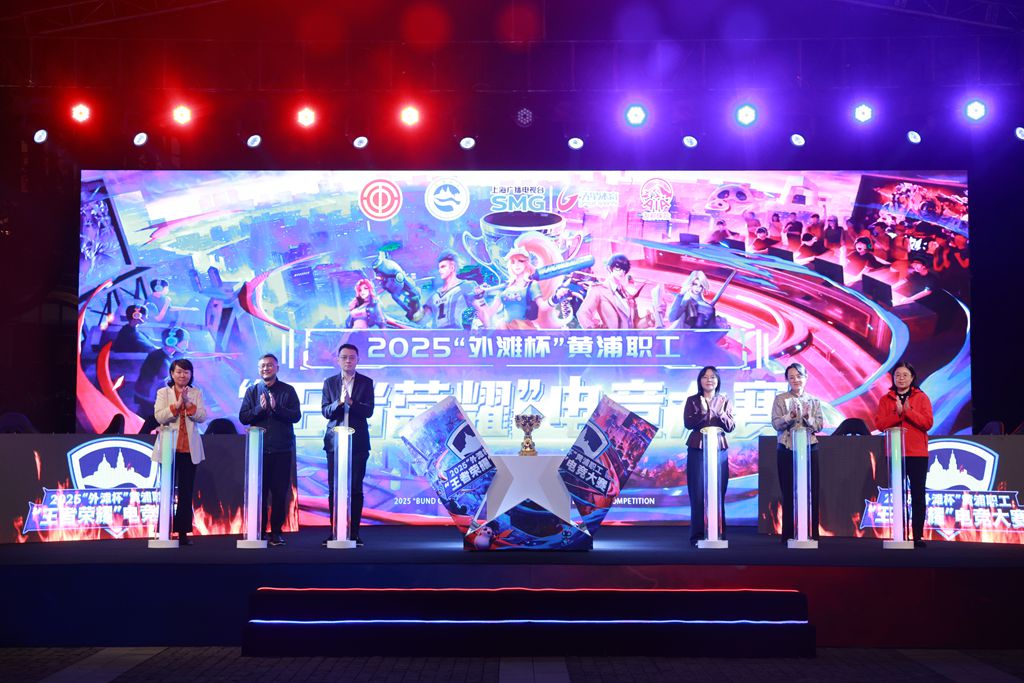 黄浦区总工会党组书记、常务副主席董磊,黄浦区外滩街道党工委书记、人大工委主任徐弢,黄浦区外滩街道党工委副书记、办事处主任高正辉,五星体育传媒有限公司总经理助理金颖滢,外滩投资开发(集团)有限公司党委副书记周熠,友邦人寿保险有限公司工会主席宋伟等领导出席开幕式。随着启动道具在倒数声中被点亮,大屏幕上呈现出绚丽的赛事主视觉,标志着 2025“外滩杯”黄浦职工“王者荣耀”电竞大赛的线下赛程正式打响!