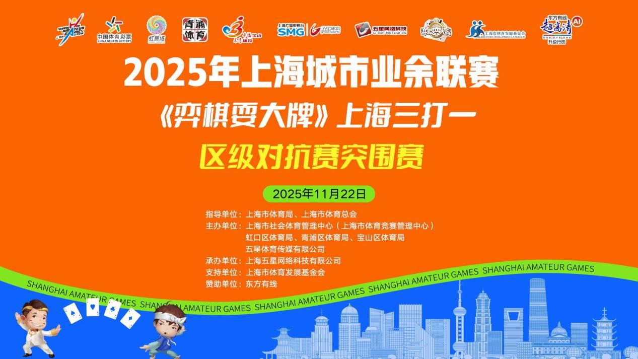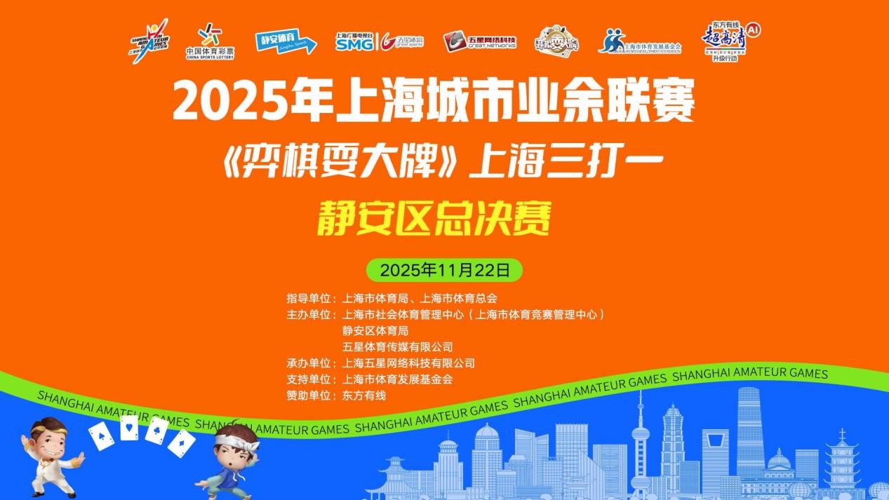 2025年上海城市业余联赛《弈棋耍大牌》上海三打一巡回赛静安区总决赛与区级对抗赛突围赛,将于11月22日在南京西路651号广电大厦20楼隆重举行。
